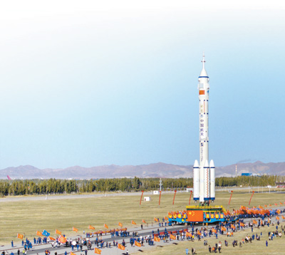 10月19日,神舟十七号载人飞船与长征二号F遥十七运载火箭组合体正在转运途中。